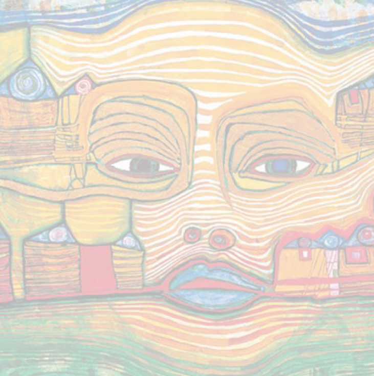 - Right image — A face overrun by horizontal contour lines with a subtle midline seam → seeds banded flow + central axis.
