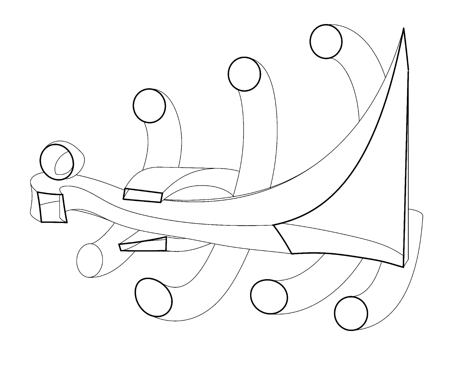 - Looping ribbons threading a calm spine — “loop + pass-through”.