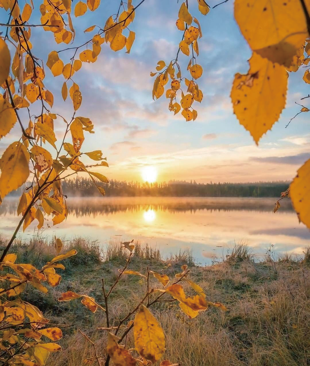 - Left image — Framed horizon and mirror-like water; sunrise sets a fixed datum.