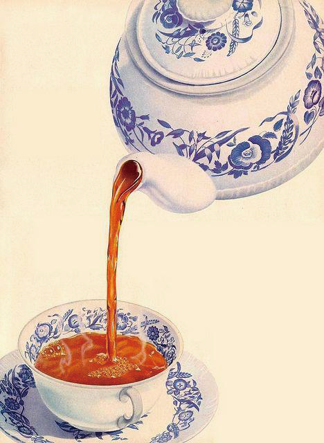 - Right image — Tea pours in a clean vertical lane onto a cup’s lip → canonical fall + shelf.
