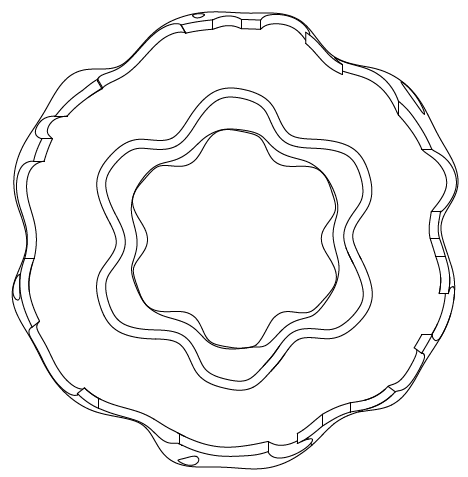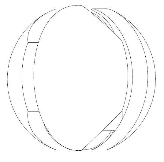 - A spherical envelope with localized dents — “sphere + disruptions”.