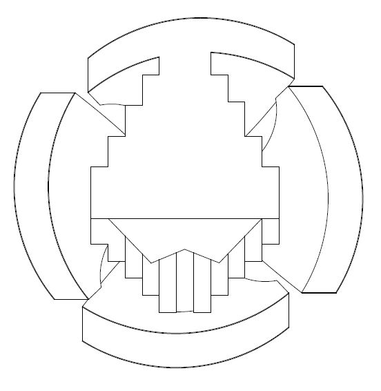 - Bold fills mark hinge segments; lineweight clarifies primary vs. auxiliary strands.
