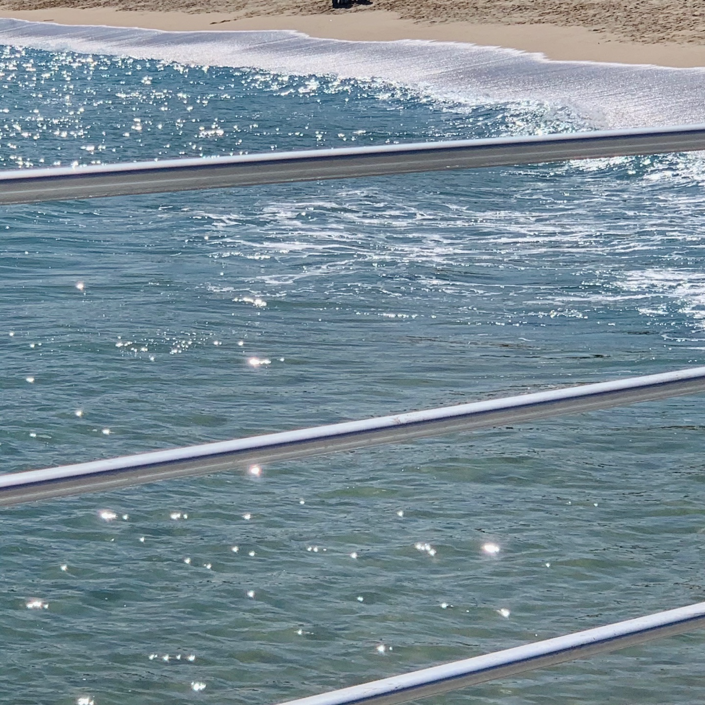 - Left image — Sparkling sea surface crossed by linear rails → seeds striped specular highlights and tangent guides.