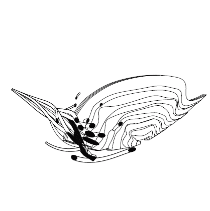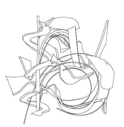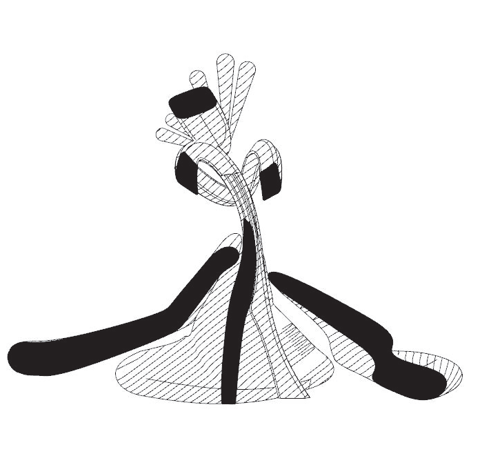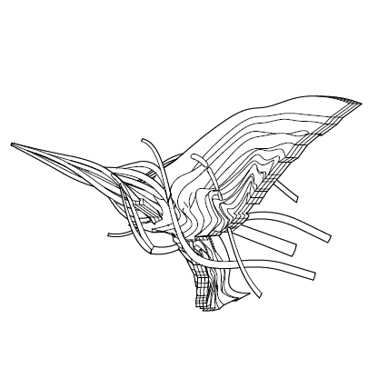 이동/복사/회전/스케일로 작은 창발적 변이를 주면서 주 제스처의 지속적 읽기를 탐구한다. 이어서 디지털 텍토닉 전환을 수행해 모델 내부에서 두께와 결구를 가정하고 읽기의 변화를 확인한다. 초점은 제스처가 어디서 읽히는지를 보여주는 드로잉과 간결한 주석 시퀀스에 있다.