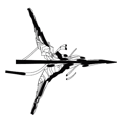 - #4 — Jet with contrails: a forward vector with a sharp nose and paired exhaust streaks suggests a spear axis plus trailing lanes.