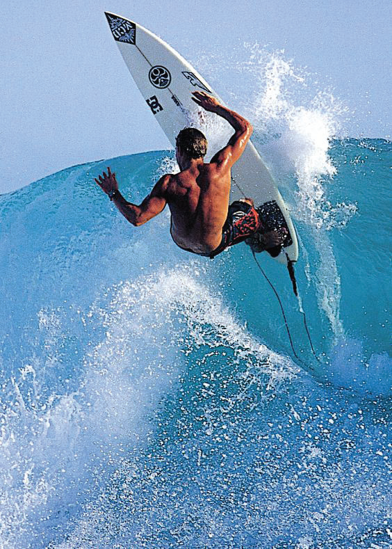 - #1 — Surfer carving the lip: a diagonal thrust crossing a soft wave crest → fin + sheet reading with spray-like offsets.
