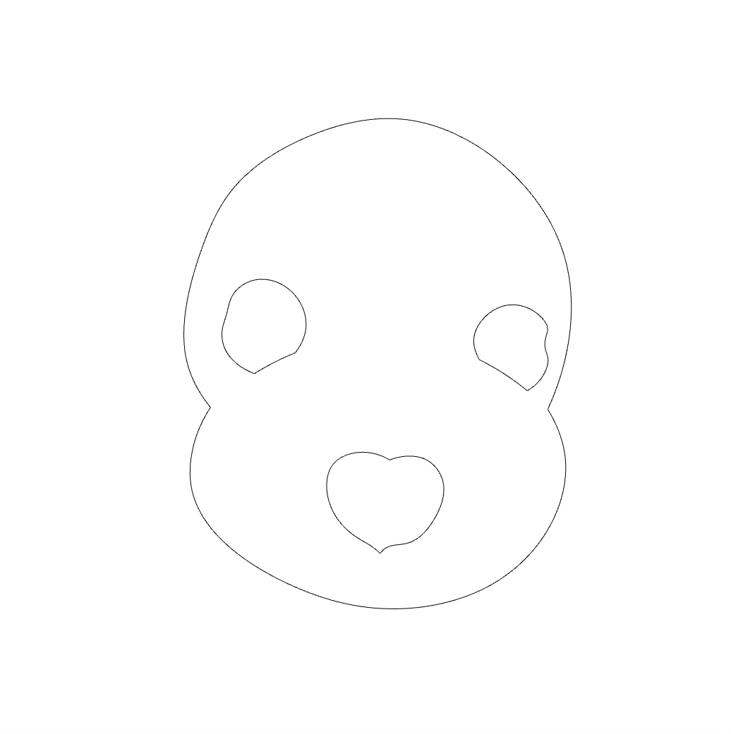 - #1 — Puppy portrait (frontal): round skull + eye/nose pits → spherical core with three primary cavities.