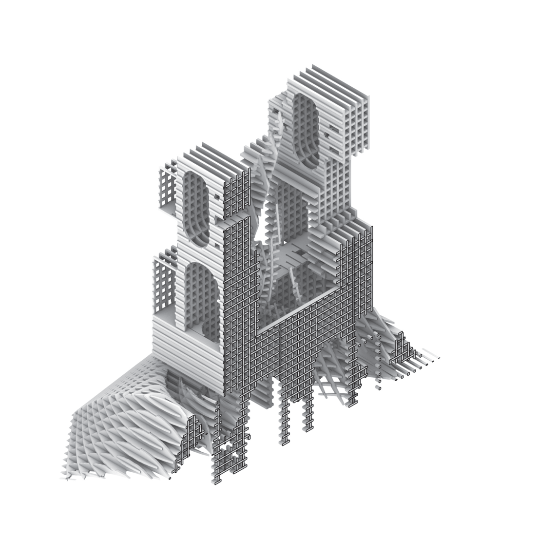 - Digital-tectonic slicing differentiates slab-like gates from thin flame ribbons.