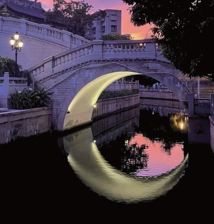 - #1 — Bridge + reflection: arch and mirror-image close to a circle → ring form with a keyed opening.