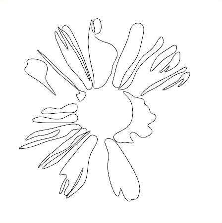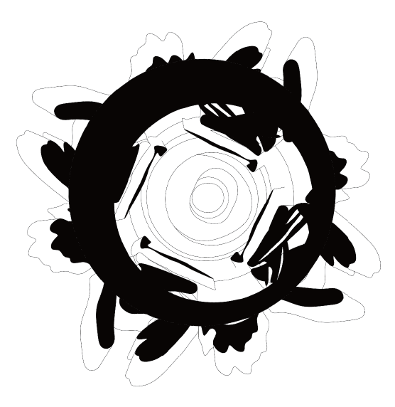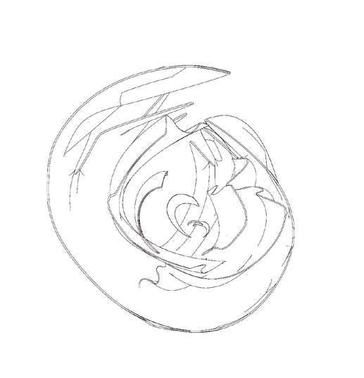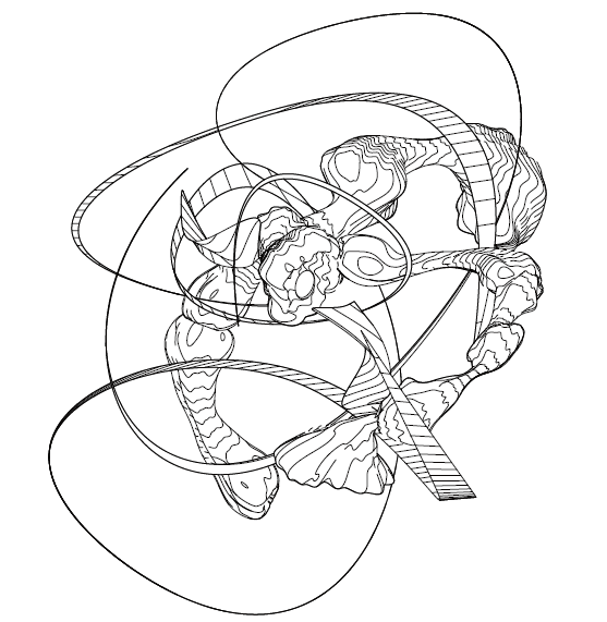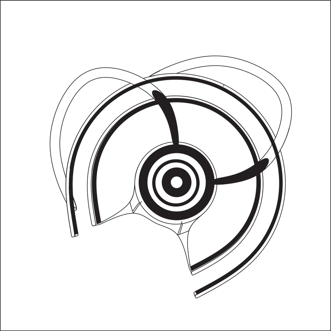 - A sweeping loop that tightens into a radial iris — “ruffled arc + aperture.”