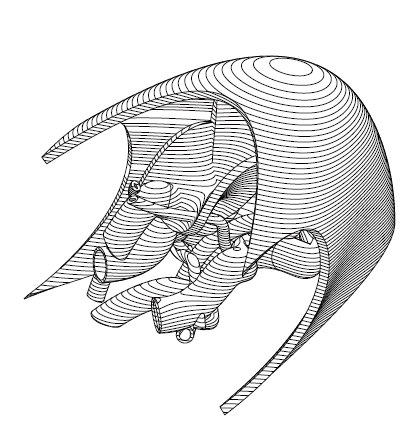 - Tectonic thickness emphasizes the rim while leaving filaments light.