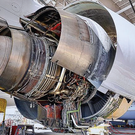- '#1 — Open jet engine nacelle exposing the core: explicit shell/hinge vs inner machinery.