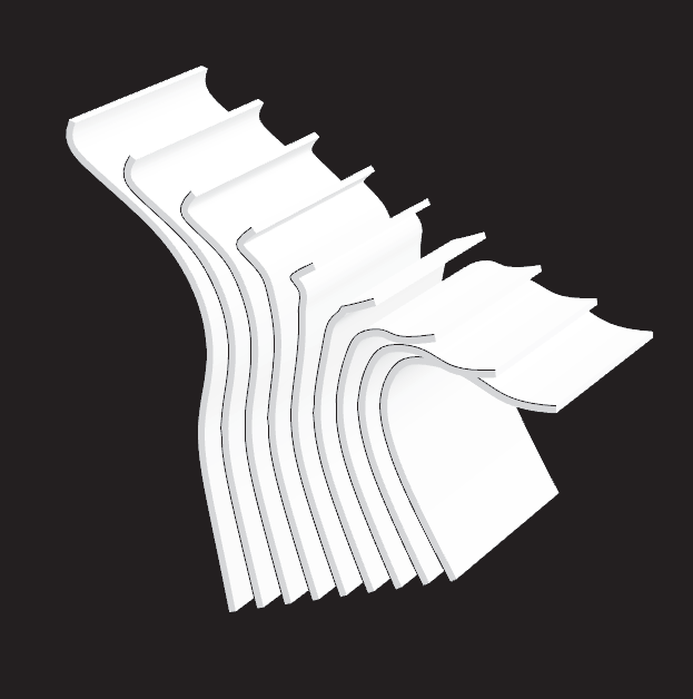 사용(2D). 디자인언어를 구성하는 프로파일 커브를 이동, 복사, 회전, 스케일 (미러 선택). 루프(6–12프레임).