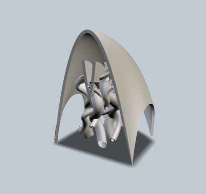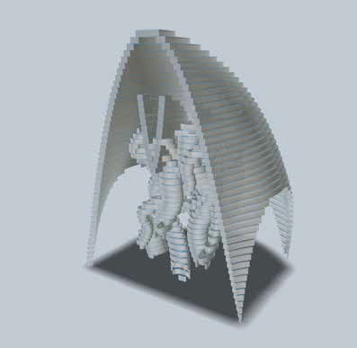 의도. 결합된 팀의 형상을 Fabrication방식으로 제안하고 모델 내부에서 표현하여 구축을 위해 지정한 “만듦의 가정”이 읽기에 미치는 변화를 파악한다.
