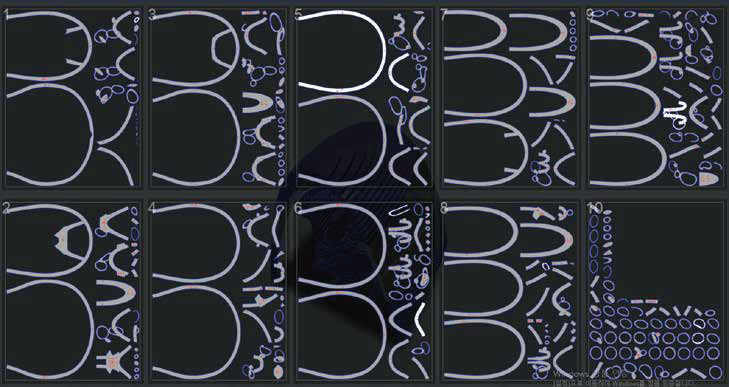 체크. 주 시점을 정해 해당 뷰에서 2D 제스처의 실루엣/축이 유지되는지 확인하고, 다른 뷰에서도 유지하기 위한 전략 설정. 3D에서 위계·밀도·리듬의 변화를 오버레이로 표기.