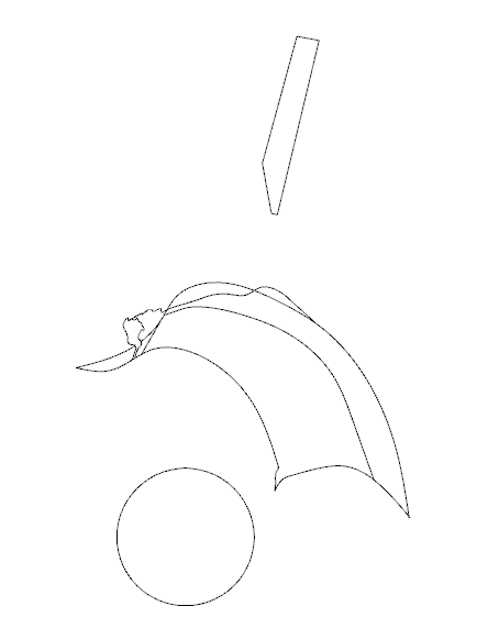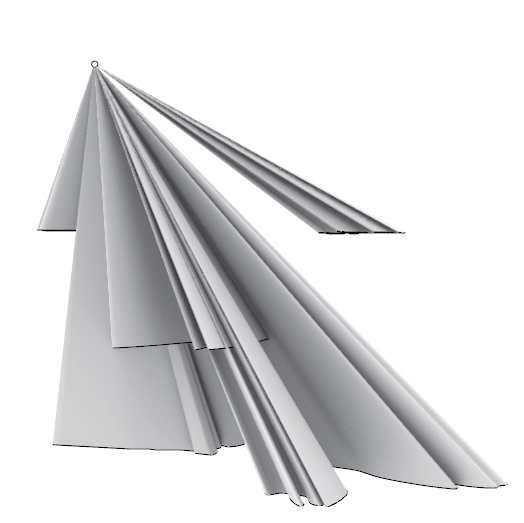 - A vertical cone that punches upward and balances at a peak — “vortex + toss.”