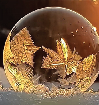 - '#1 — Frozen soap bubble with crystalline leaf patterns → reads as a hollow sphere/shell.