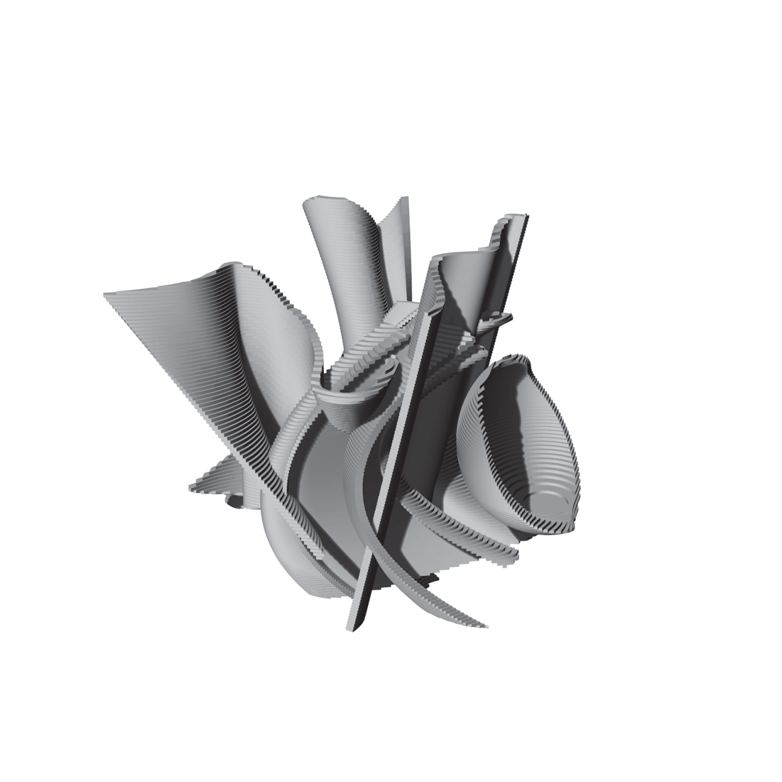 Goal. Lift the same gesture into 3D while preserving its core reading (silhouette/axis/periodicity).