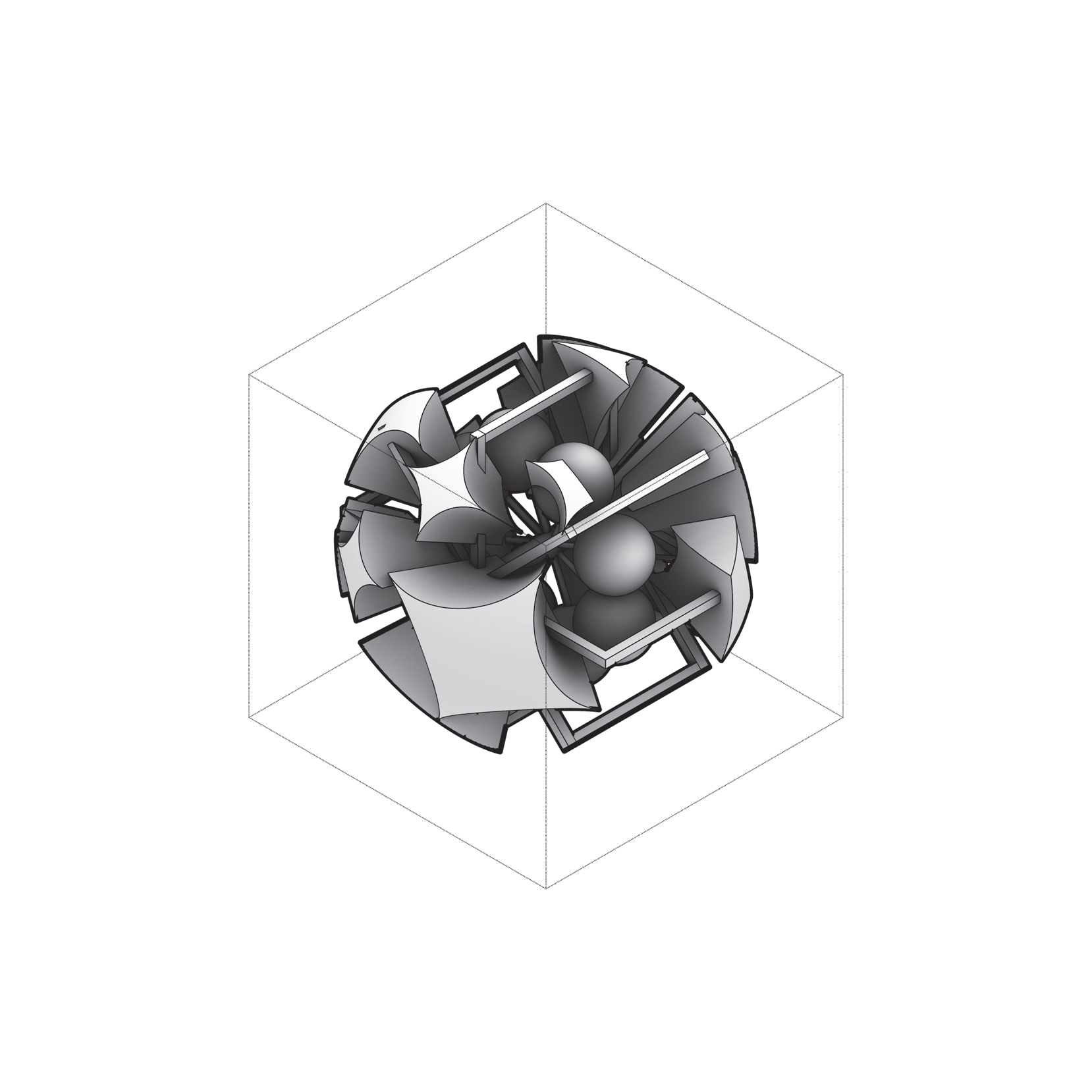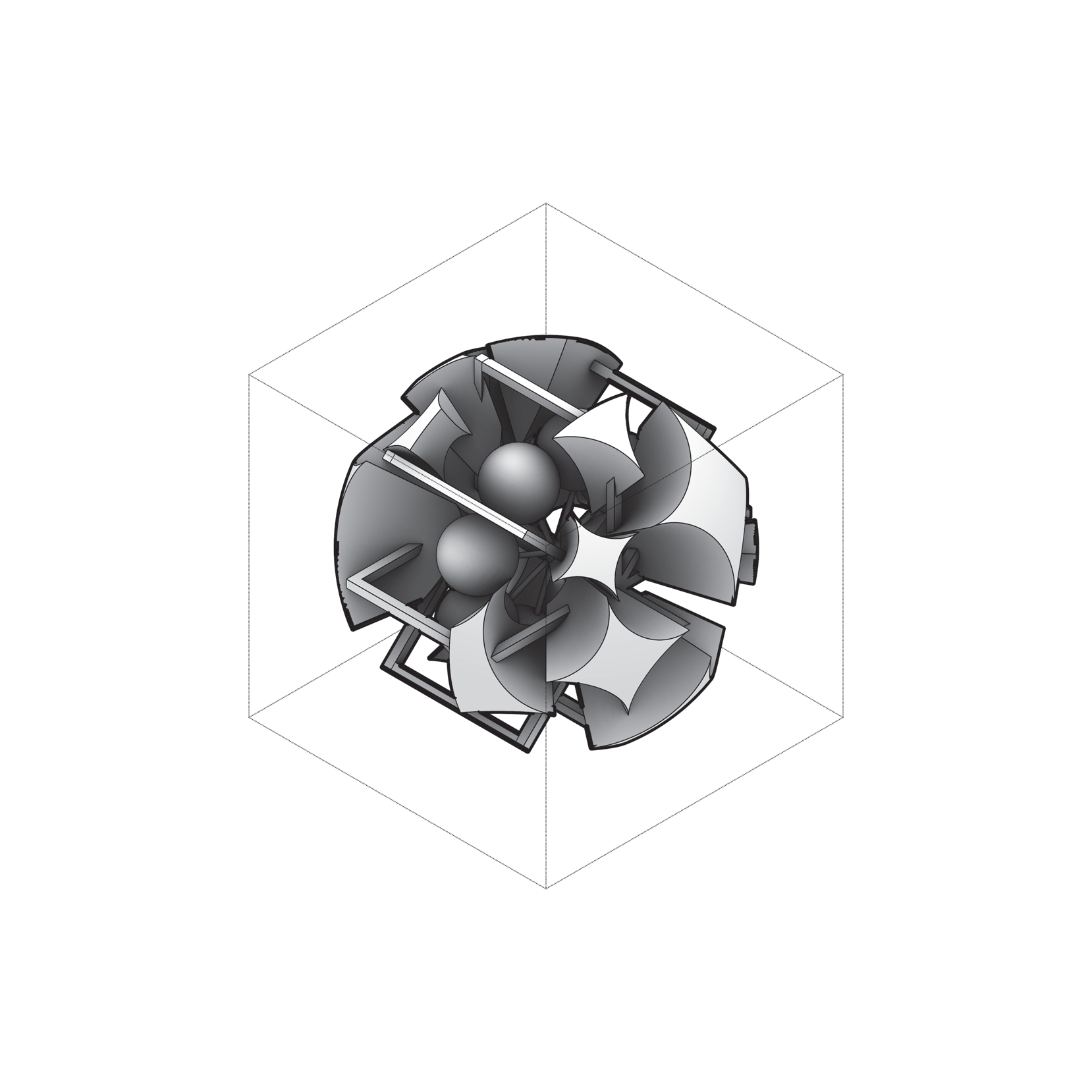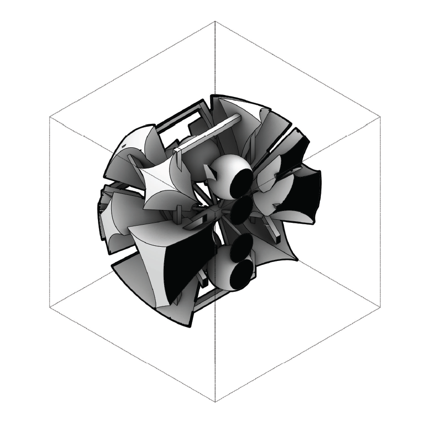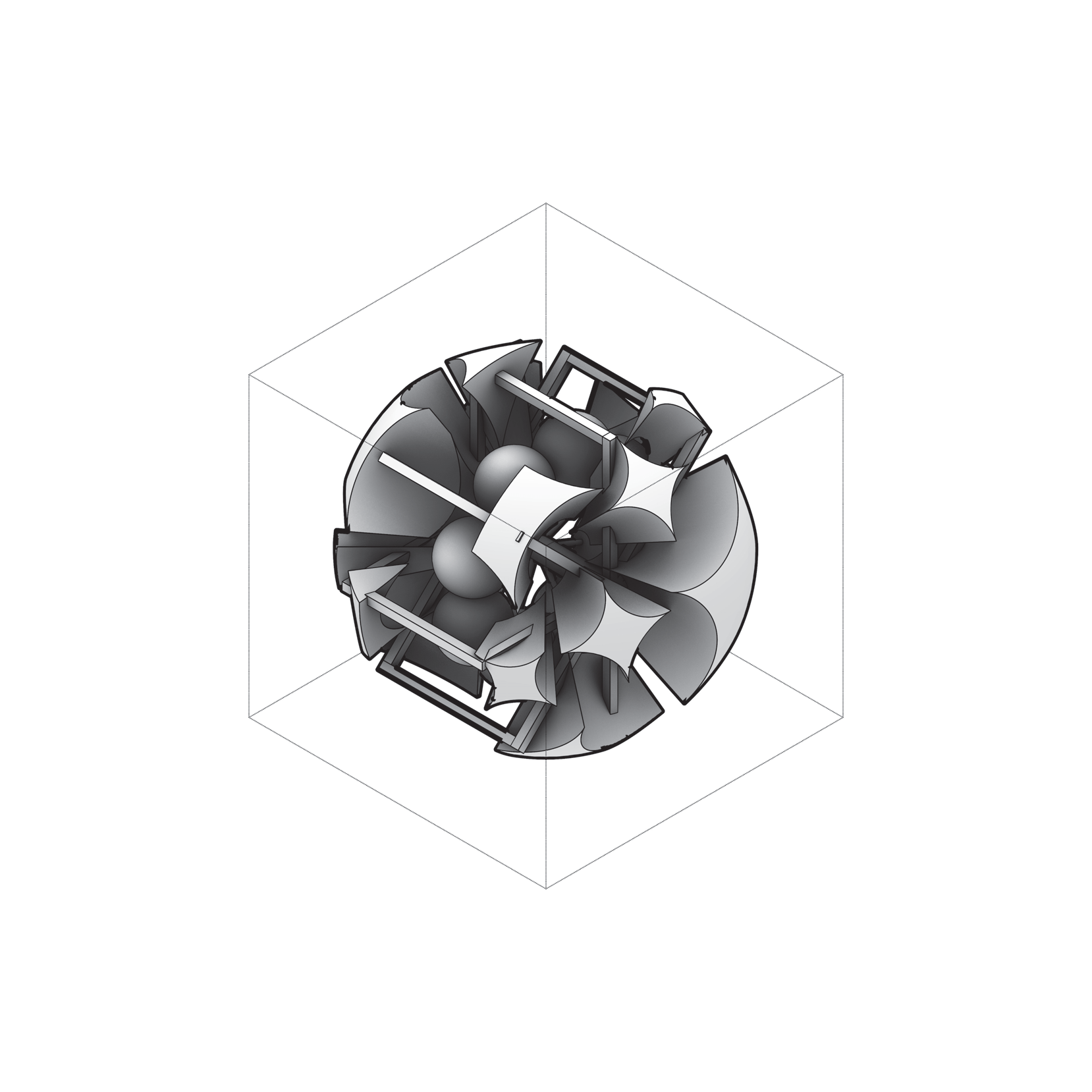 - A — personal 3D (#2–#3): fan becomes shallow ribs around a hub; count/flare vary while the spin axis holds.