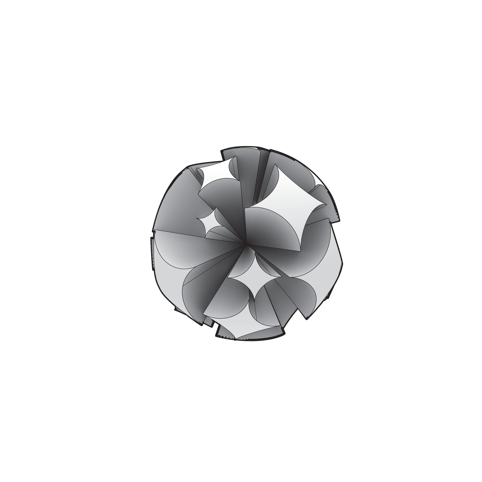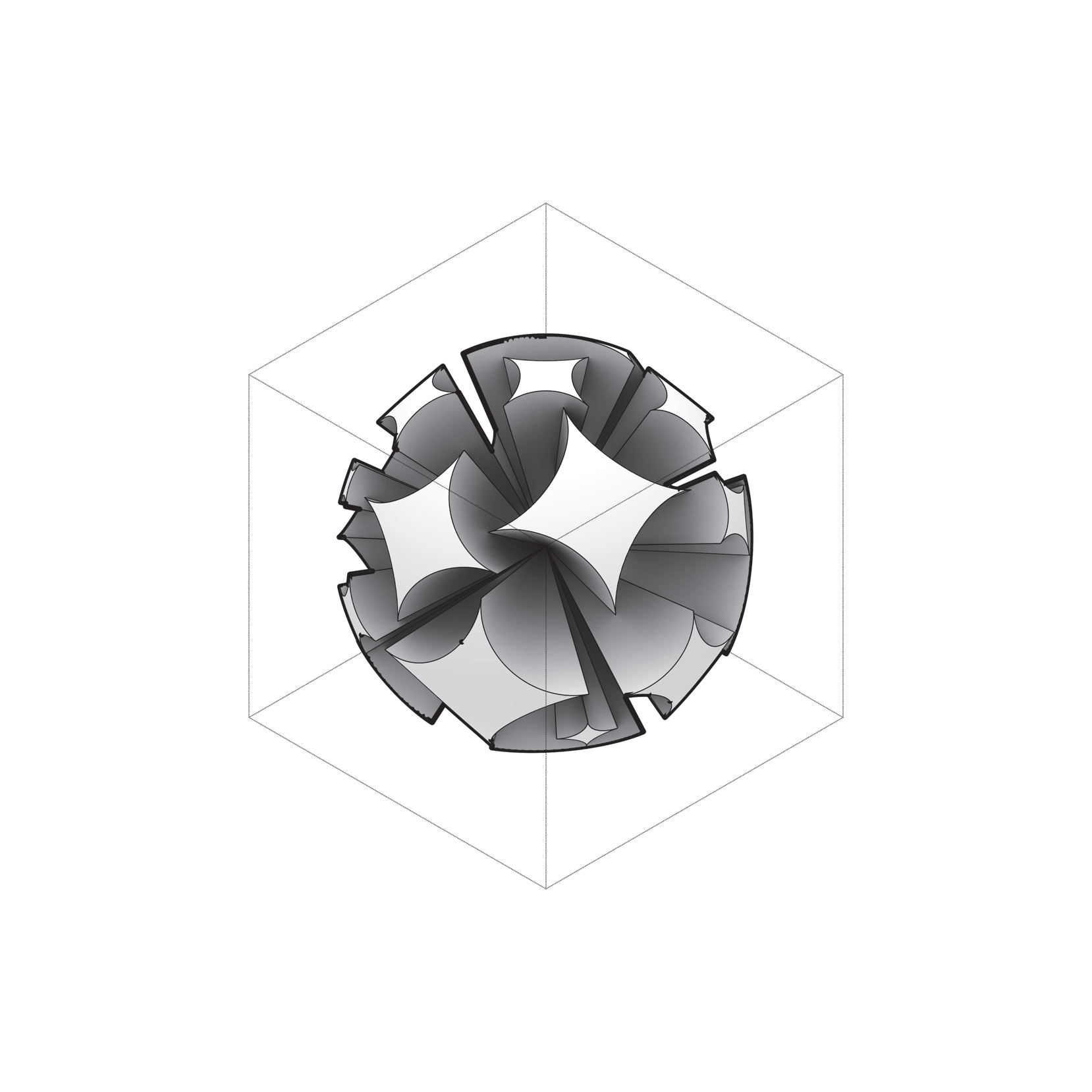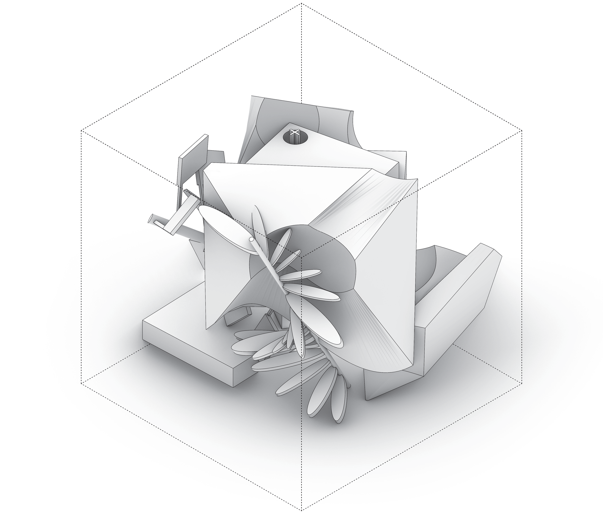- A — personal 3D (#2–#3): fan becomes shallow ribs around a hub; count/flare vary while the spin axis holds.