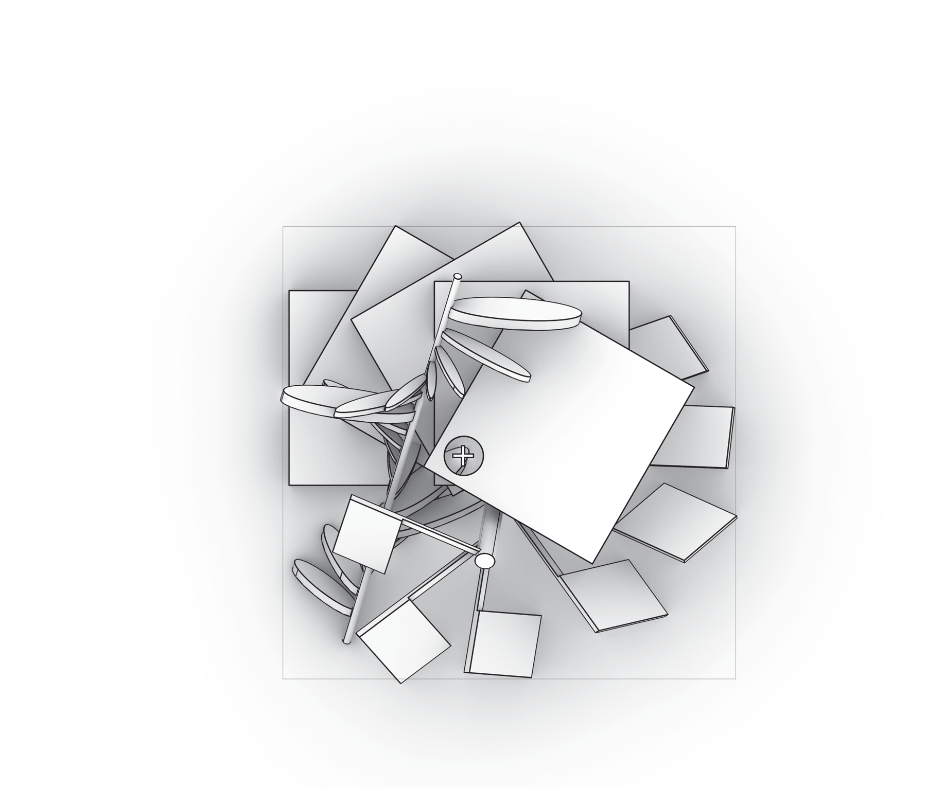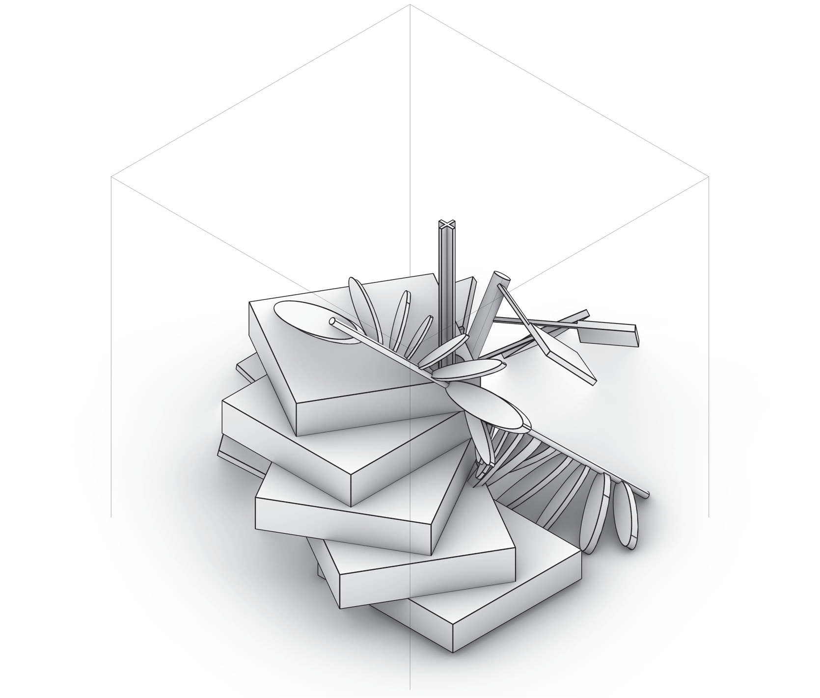 - CAD-language-sourced: adopt a basic transform as a drawing behavior—Move (stepping rhythm), Copy (interval field/echo), Rotate (fan/radial drift), Scale (graded emphasis).