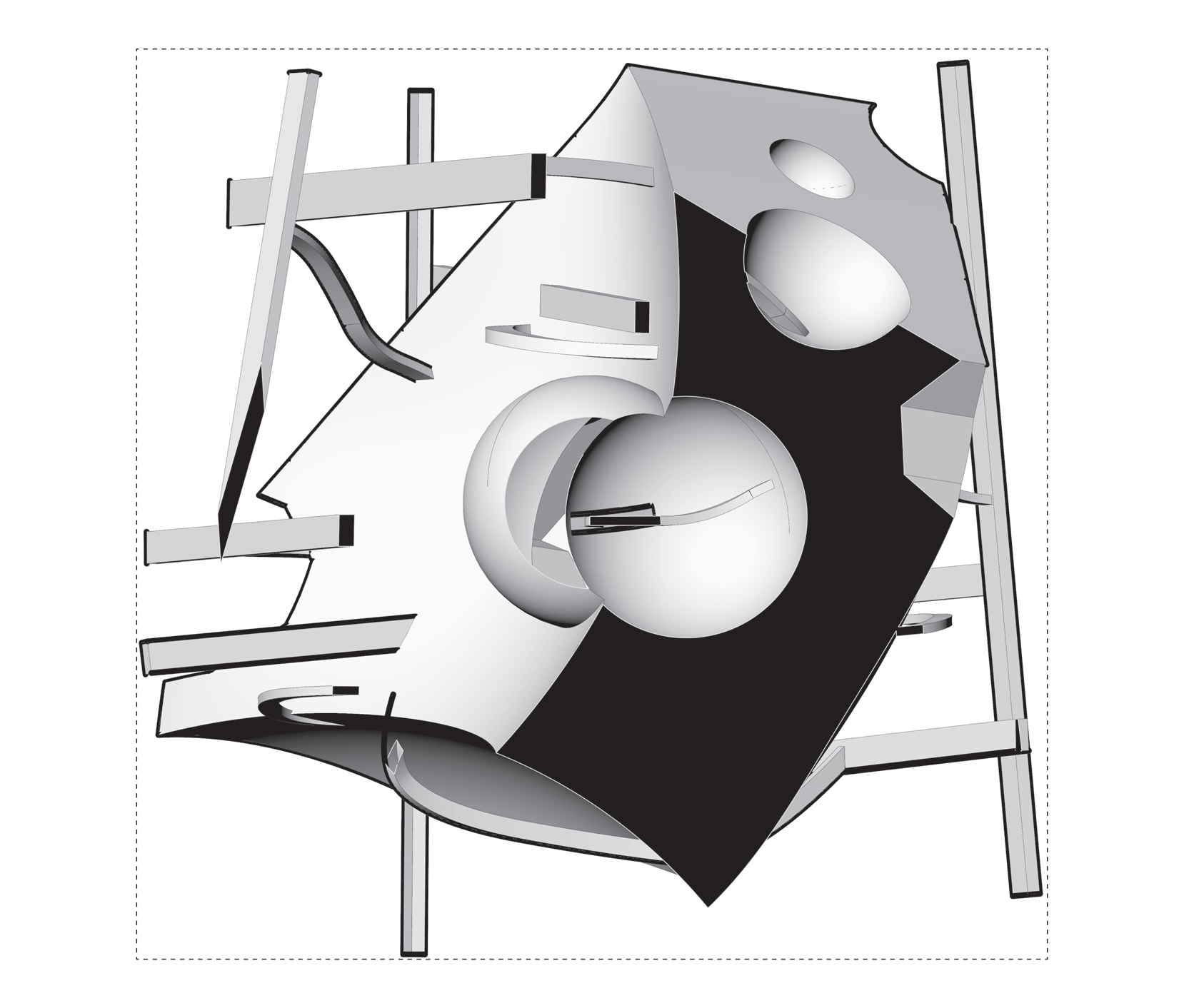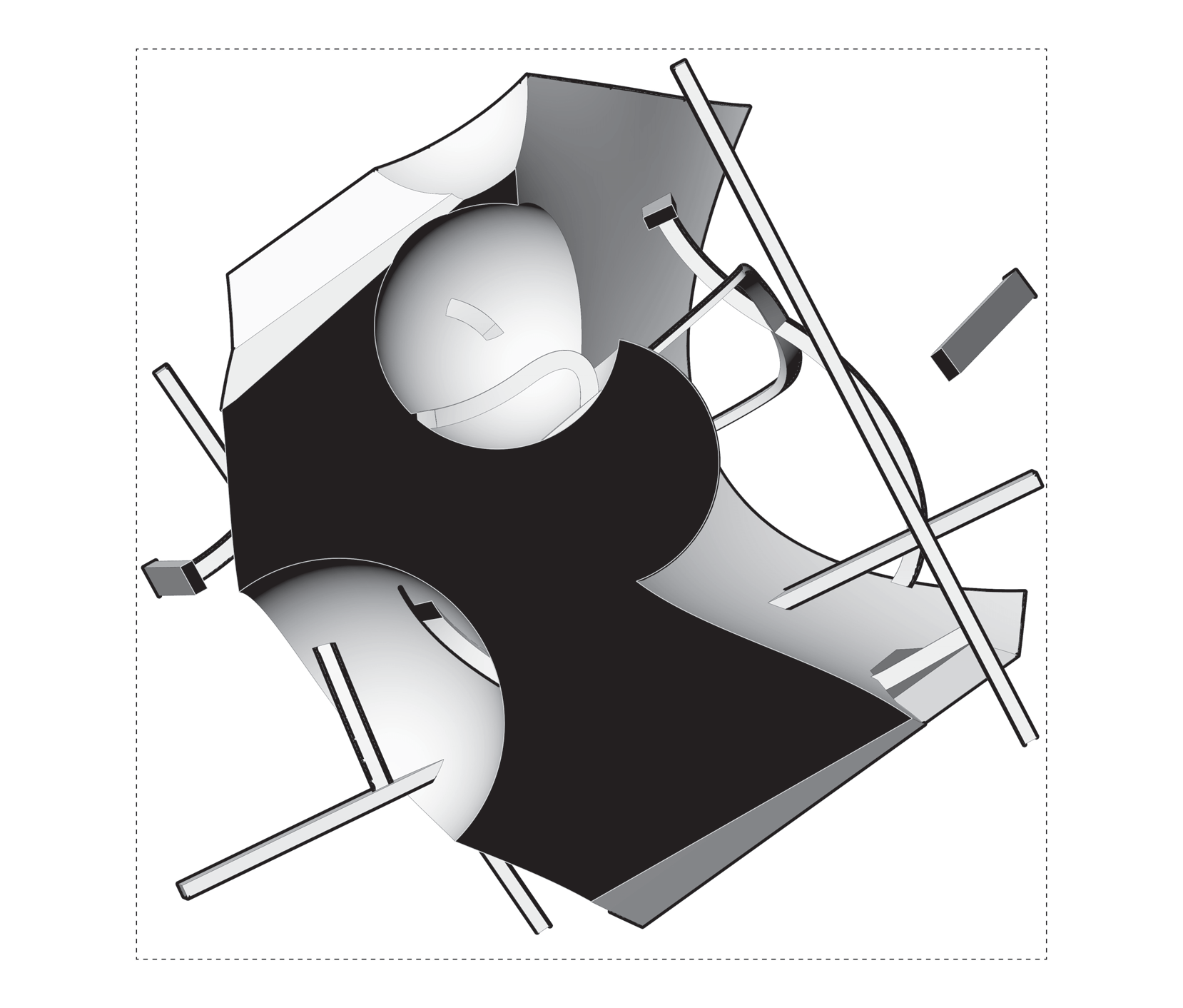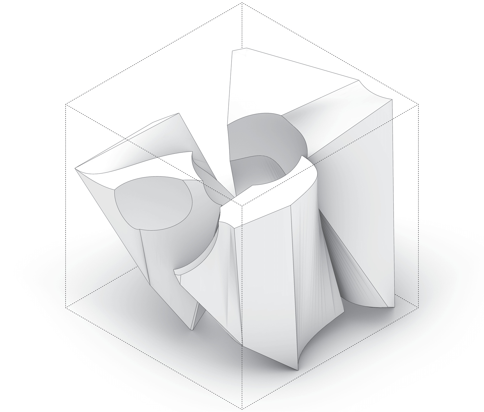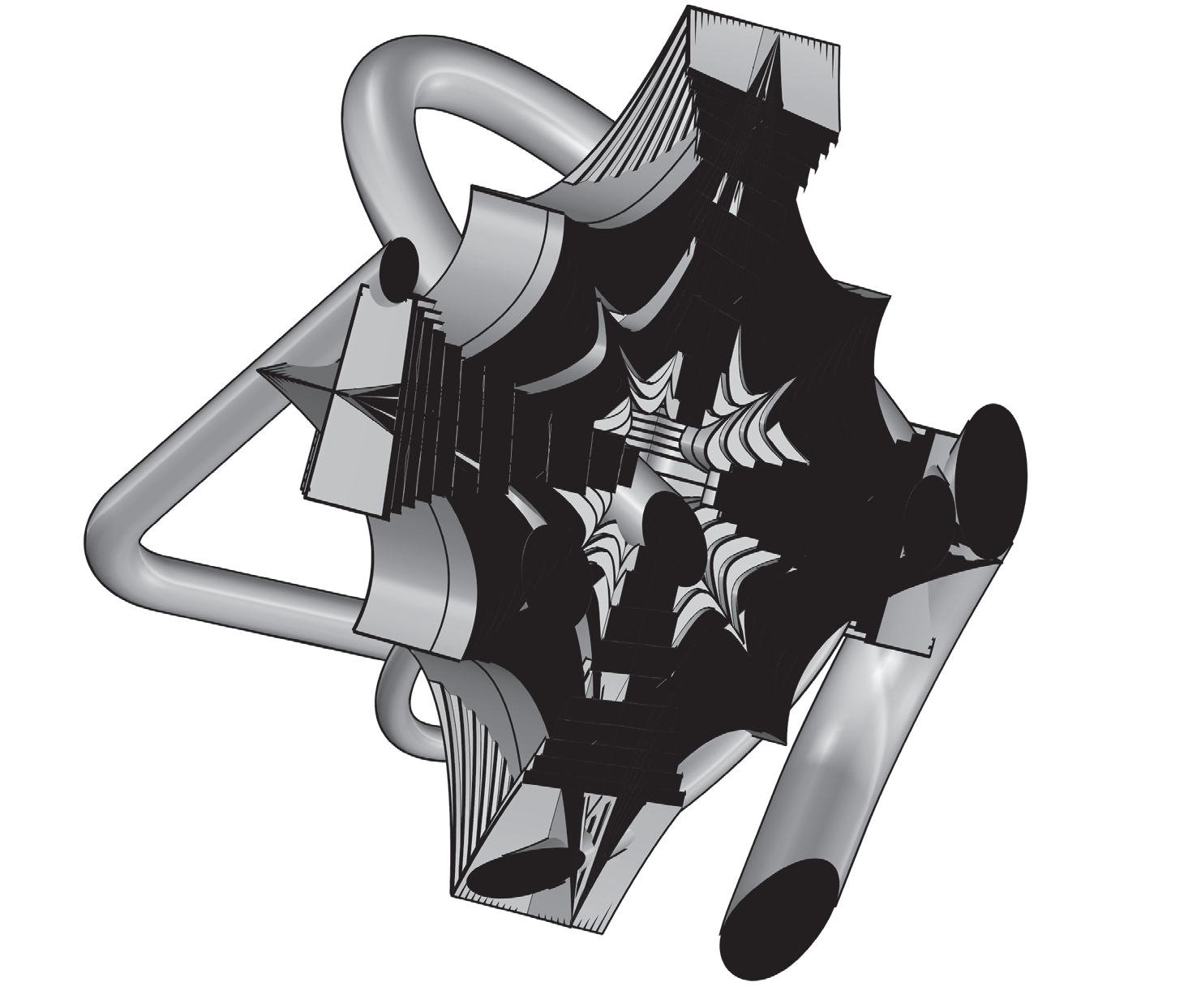 Rounded contours stretched into elongated spans — “filleted edge + extension”.