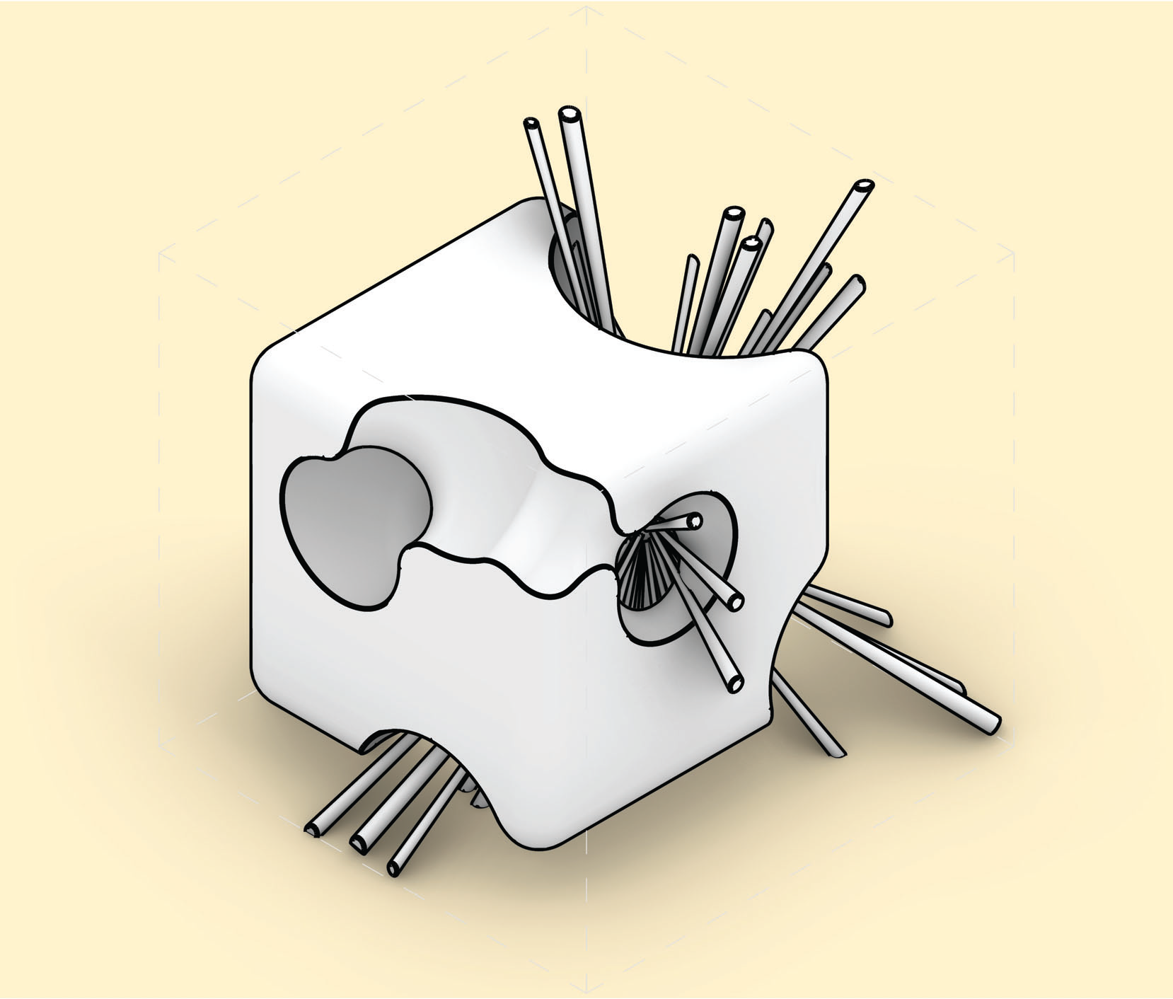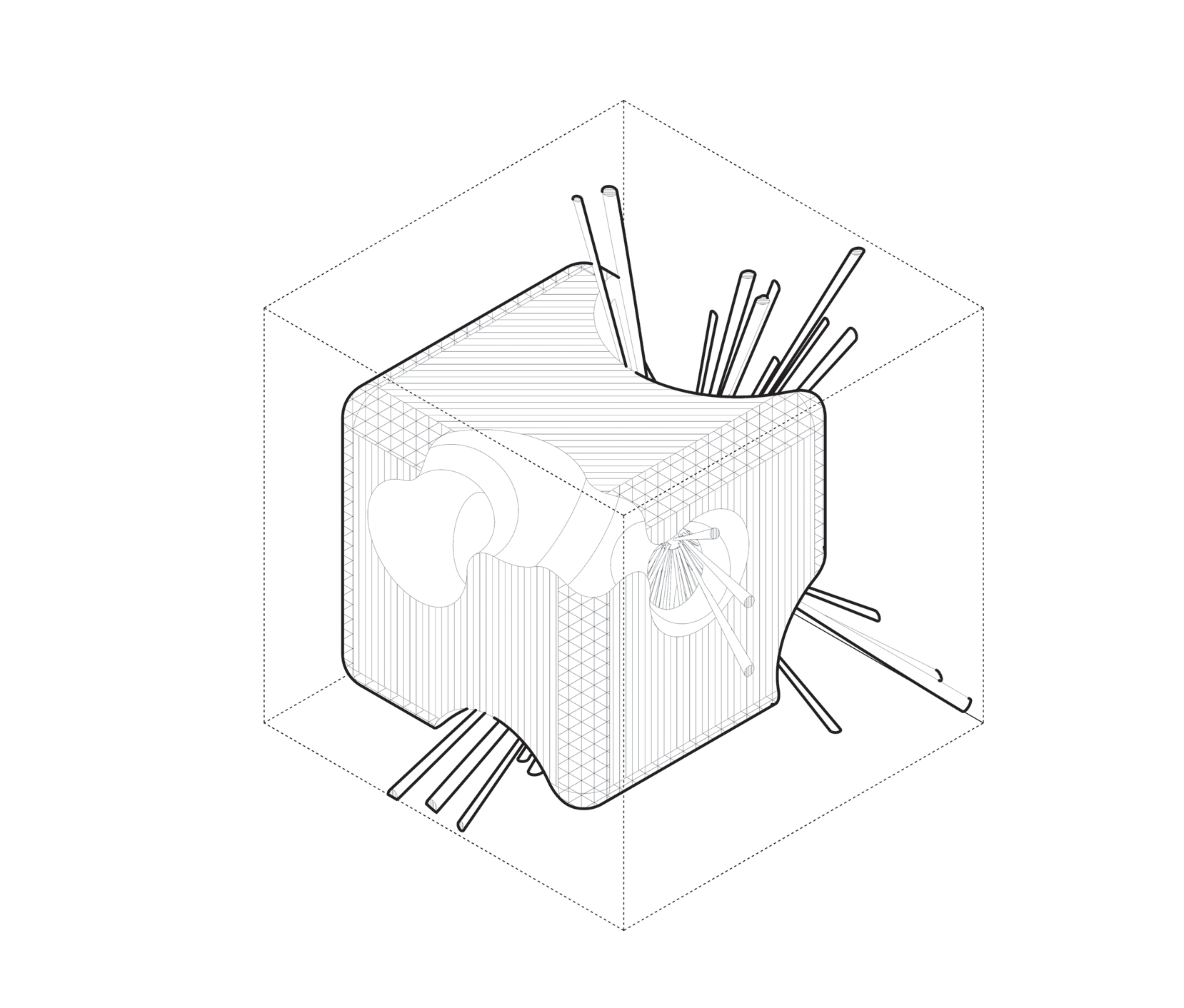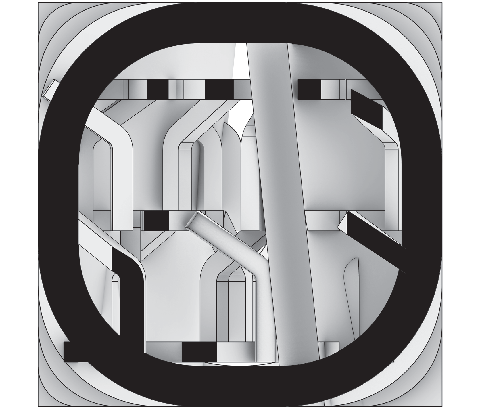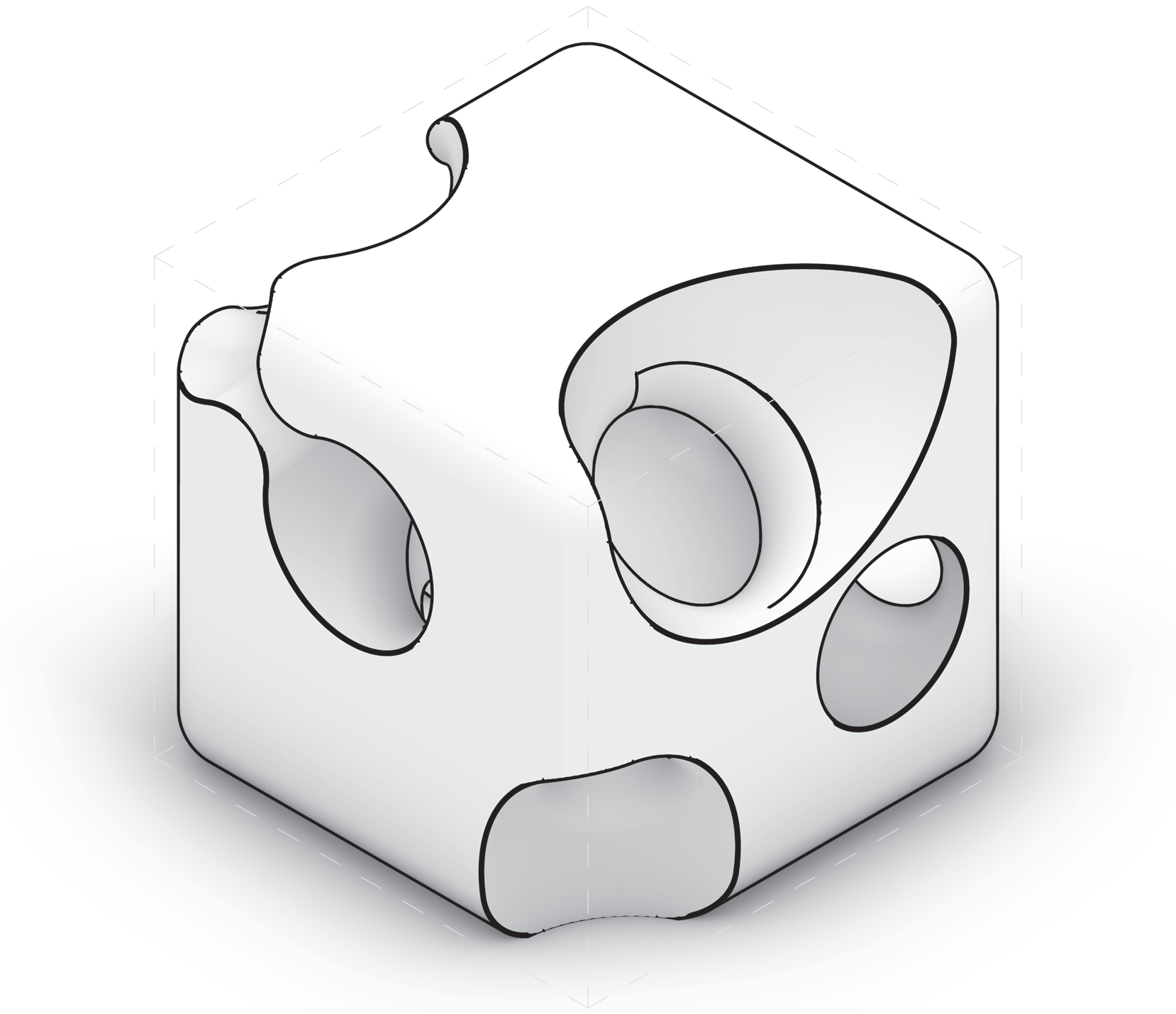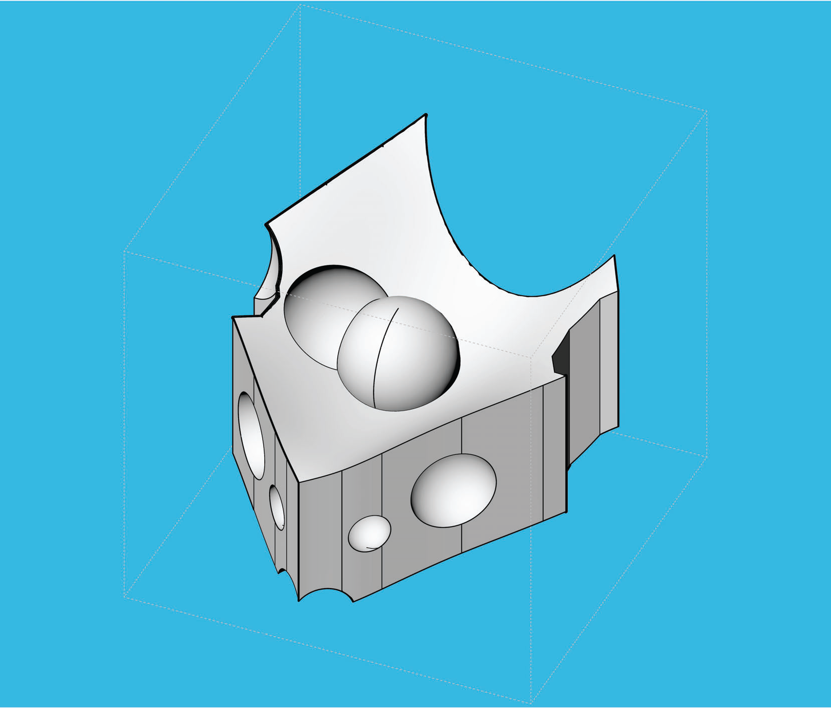 Rounded contours stretched into elongated spans — “filleted edge + extension”.
