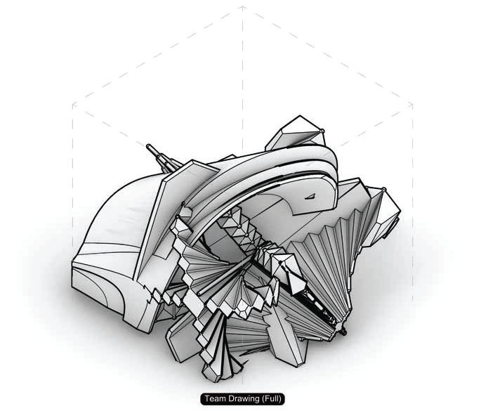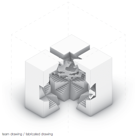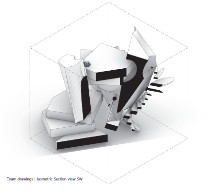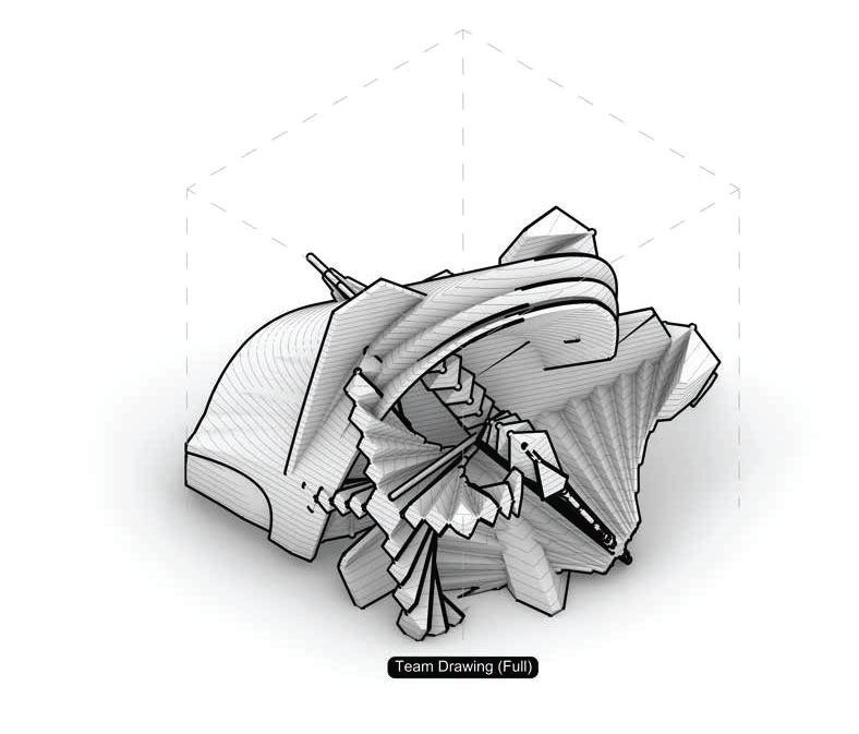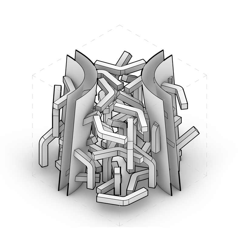의도. 결합된 팀의 형상을 Fabrication방식으로 제안하고 모델 내부에서 표현하여 구축을 위해 지정한 “만듦의 가정”이 읽기에 미치는 변화를 파악한다.