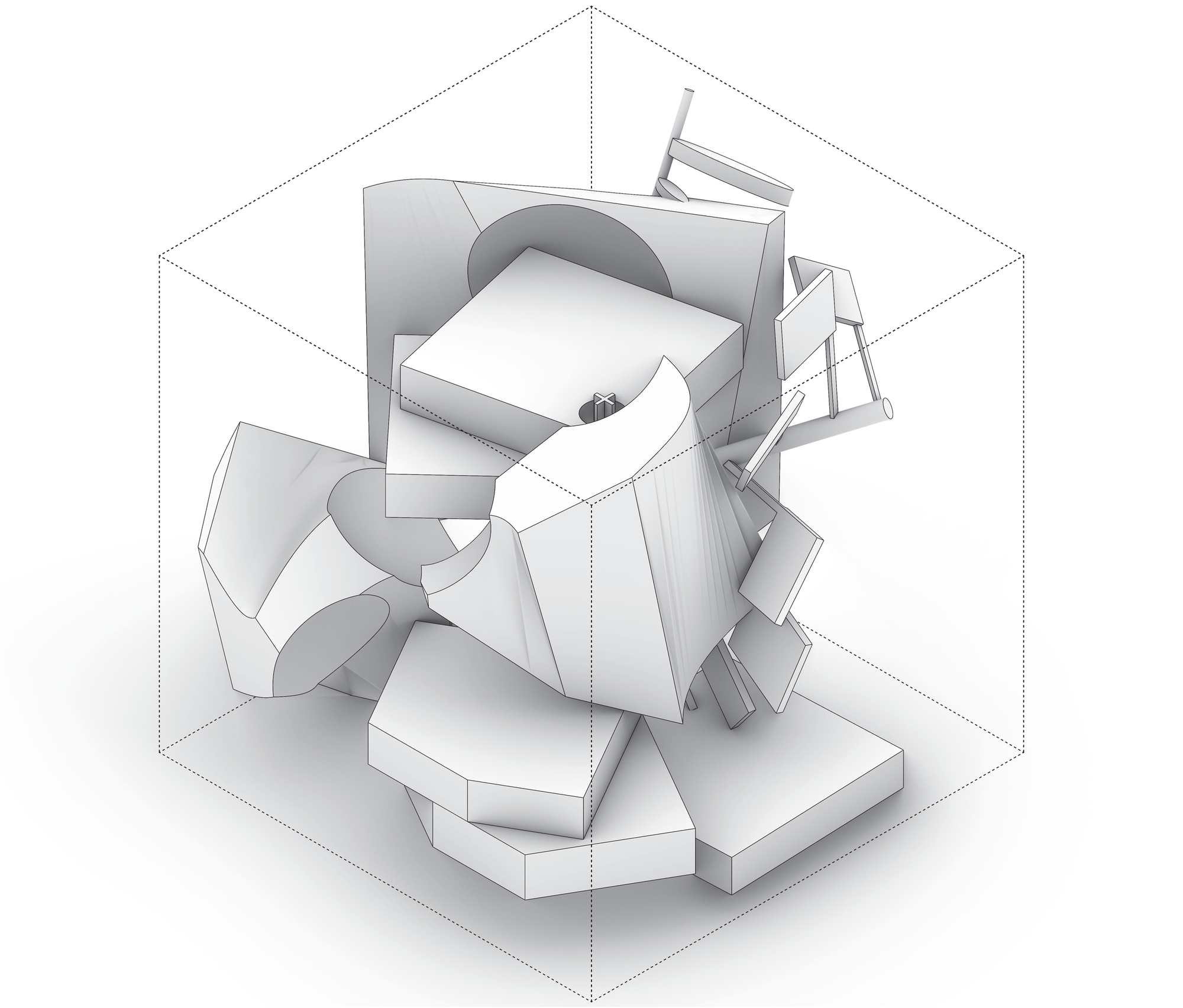 Using Move/Copy/Rotate/Scale, we introduce small, emergent variation and examine the persistence of the gesture’s reading. We then perform a digital tectonic translation—assuming thickness and joints in the model—to observe how making logic shifts the reading. Emphasis is on drawings that show where the gesture reads and concise annotated sequences.