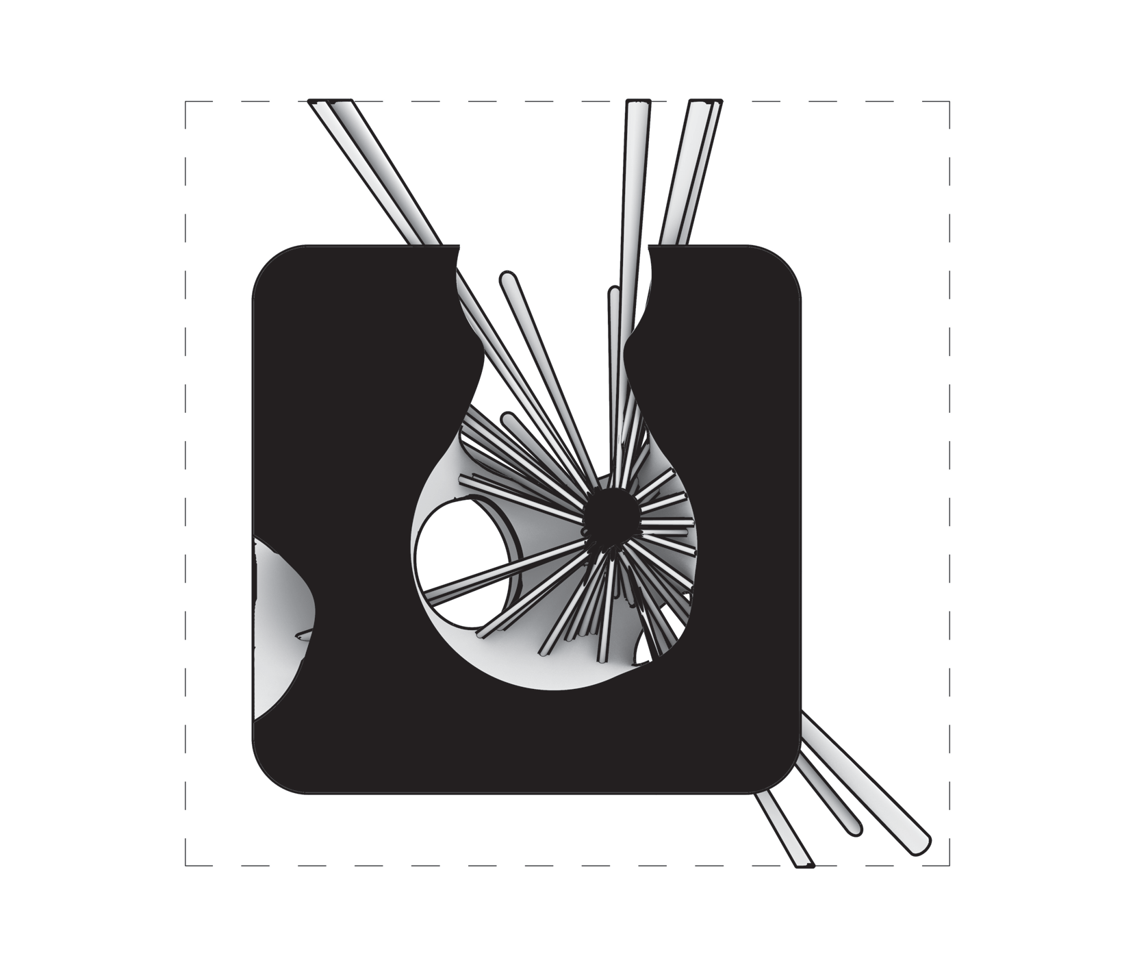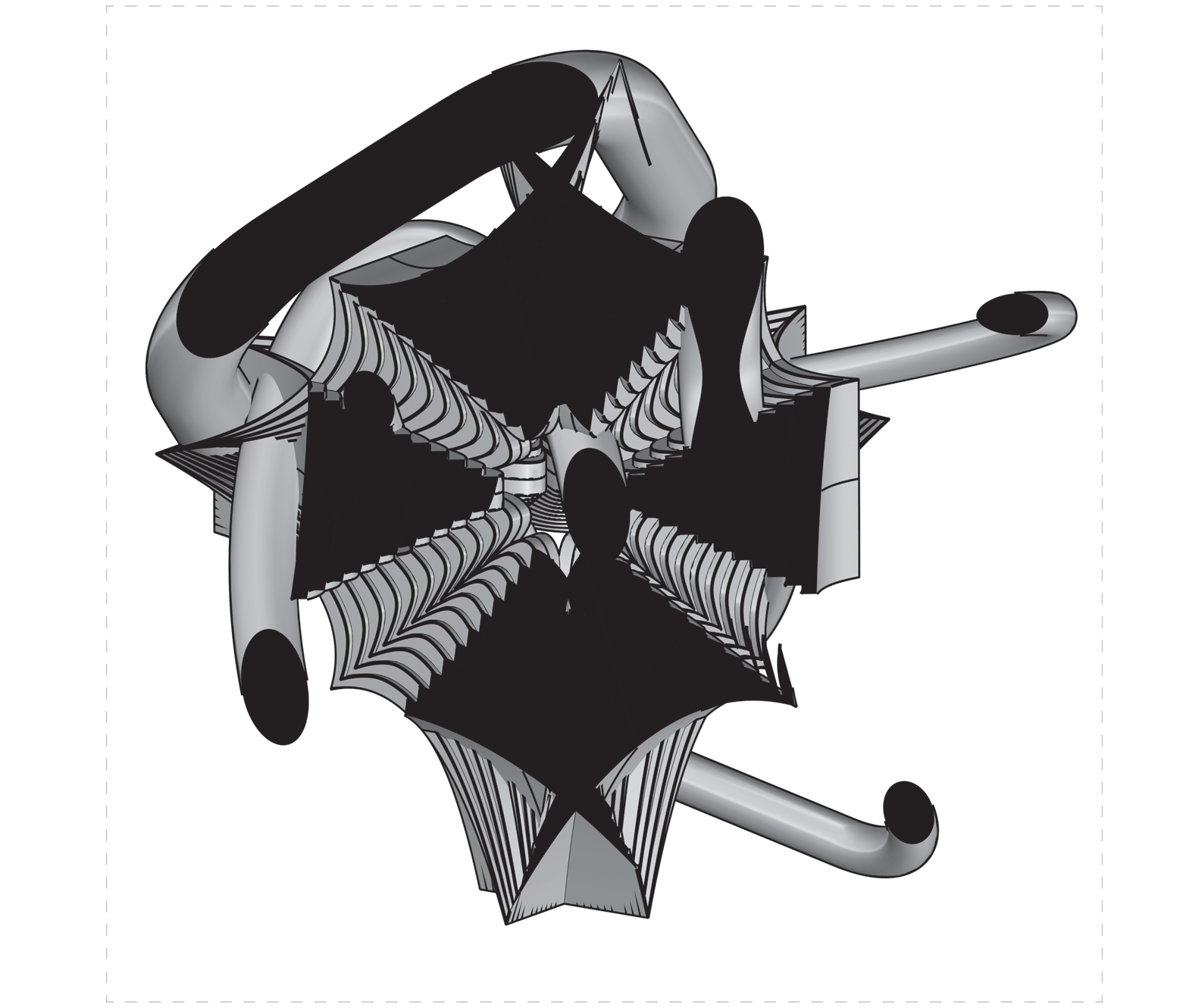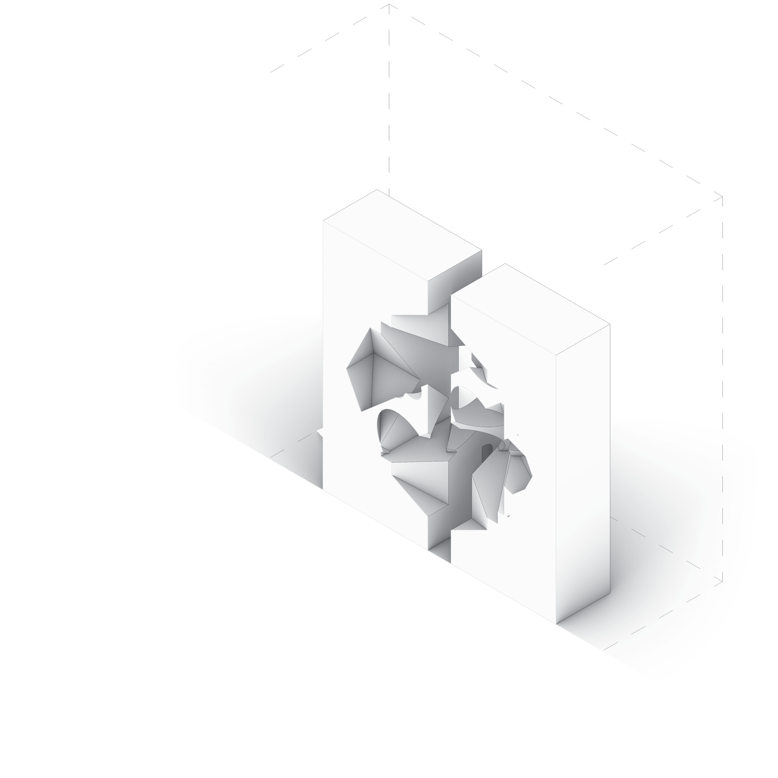 Twin voids governing a mass — “mirrored cutwork”.