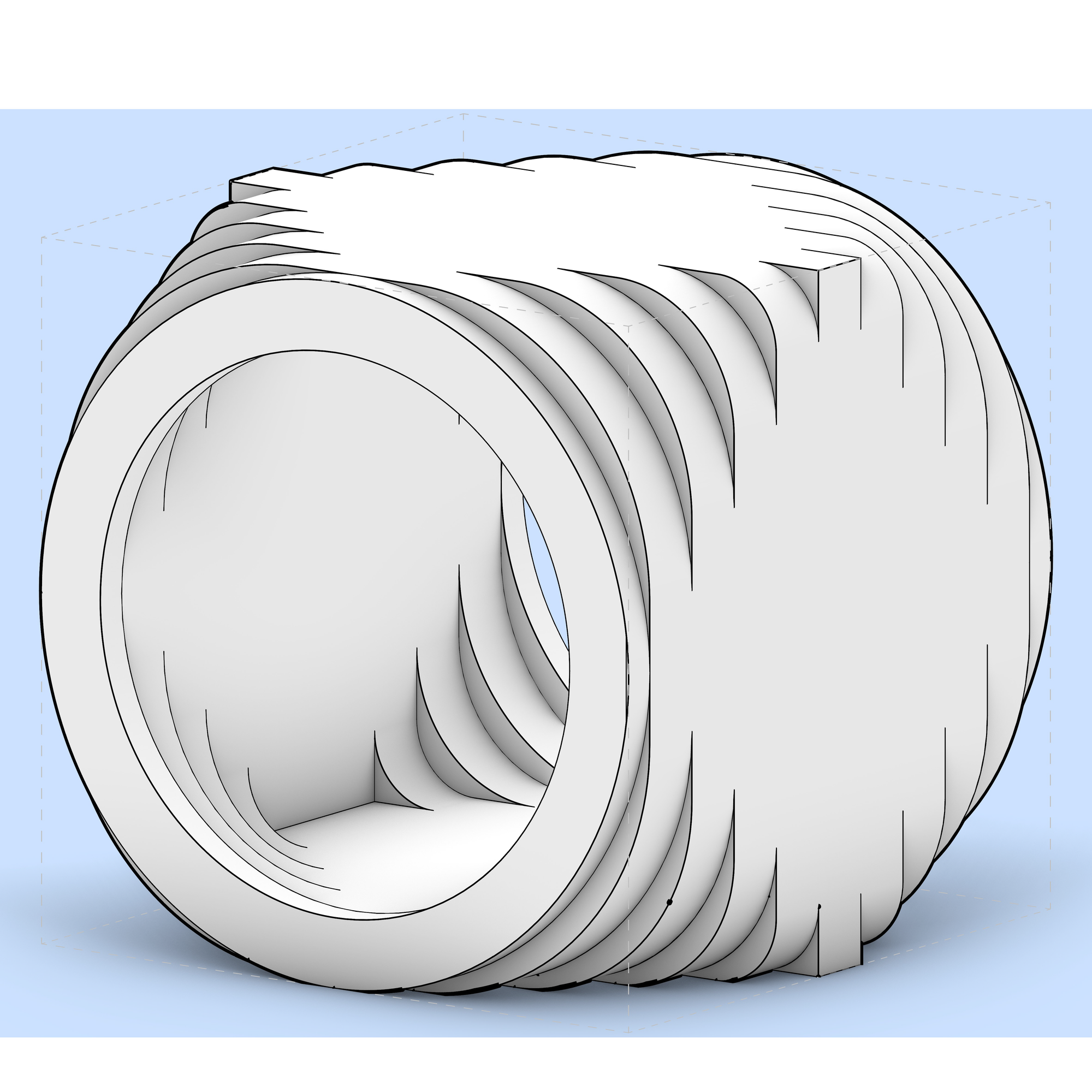 - A — personal 3D (#2–#3): filleted contours form a smooth shell; radius hierarchy holds.