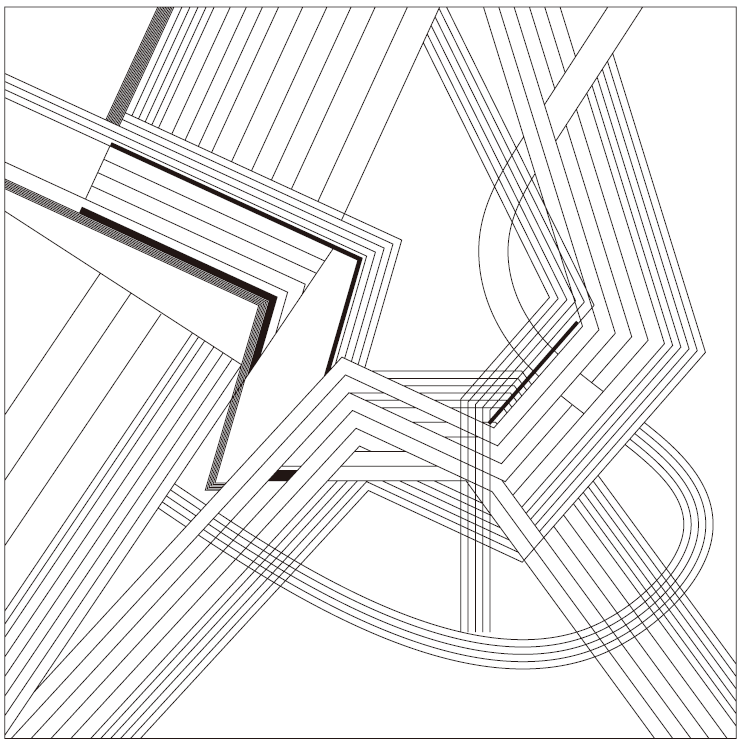 - CAD 언어 기반: 기본 변환을 그리기 행위로 채택—이동(스텝 리듬), 복사(간격장/에코), 회전(부채/방사 드리프트), 스케일(강조 그라데이션).